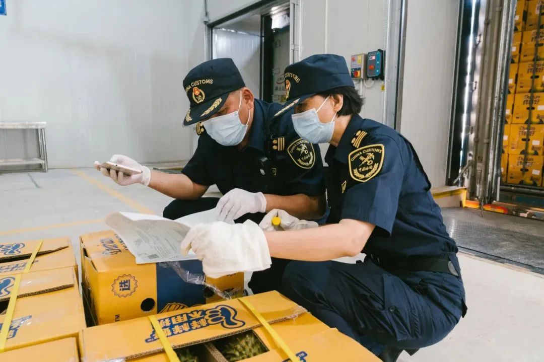 装满泰国榴莲的集装箱冷柜停靠查验平台后,西双版纳海关工作人员第一时间按要求开展监管工作,经办结通关流程后,即可发往国内市场抢“鲜”上市。水路运输由泰国直达中国,不仅避免了跨三国联运的情况,同时运载量更大,大大缩减了企业成本。