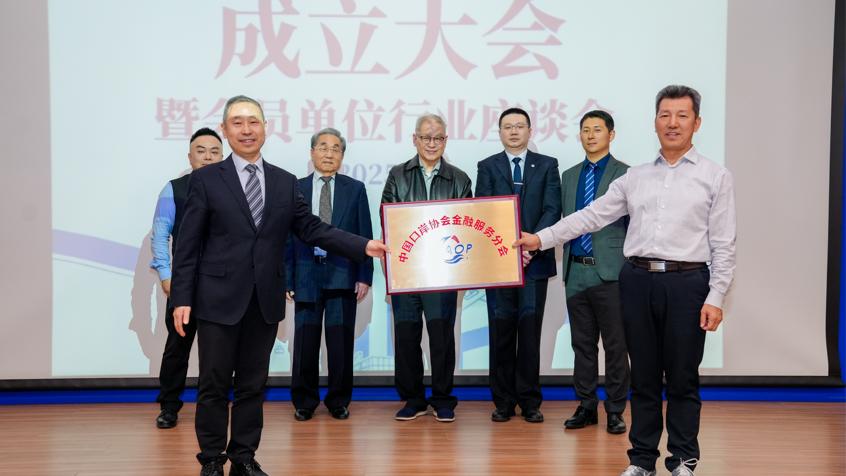 郭建伟与张野共同为金融分会揭牌。刘明康先生、张之骧先生、沈威副会长、丁帅副会长、金融分会郑明程秘书长共同见证分会揭牌。