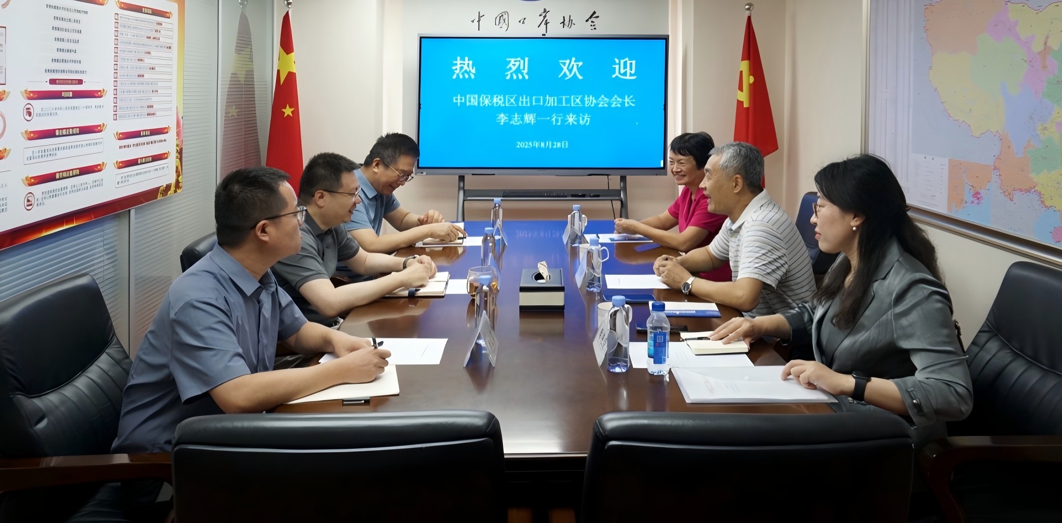 8月28日,中国保税区出口加工区协会会长李志辉、党支部书记兼副会长徐慧筠、秘书长席艳荣一行到访中国口岸协会,与协会领导进行交流座谈。